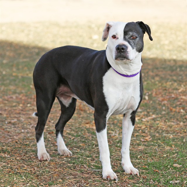 Description: Shelter staff named me Kona and I am a spayed female, black and white Pit Bull Terrier mix.