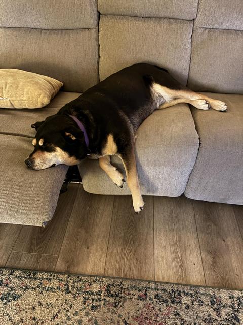 Buggy is what happens when a gentle soul and a throw pillow have a dog. Calm, quiet, and ridiculously sweet, she’s not here for chaos — she’s here for comfort, routine, and the softest couch in your house. She’s easy to leash, a dream to walk, and takes treats like a polite little lady (no finger casualties here). Buggy enjoys taking her time sniffing every interesting smell the world has to offer, because at 8 years old she knows there’s no need to rush greatness. Her hobbies include: daily strolls, serious booty scratches, and perfecting the art of relaxation. Buggy isn’t asking for much — just a comfy couch, a few leisurely walks, and someone to love her forever. And honestly? She’s earned it.