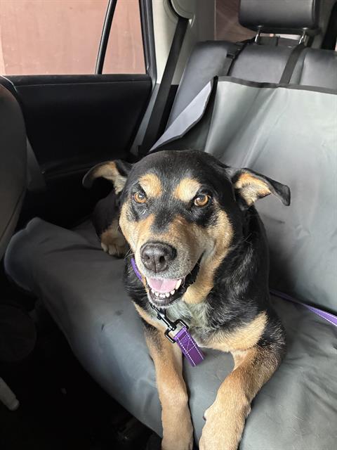 Description: Shelter staff named me Buggy and I am a spayed female, tricolor Rottweiler mix.