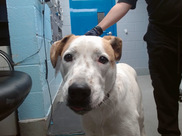 Description: My name is Noah and I am a neutered male, white and brown Labrador Retriever mix.