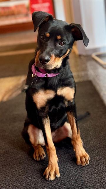 Sienna is a fun, playful, sweet and smart little lady that looks like a rottweiller mix perhaps? Based on the paw size, coloring and those beautiful tan eye brows! Sienna is here because her owners knew that there was someone out there like you that could give her everything she needed which includes lots of love, sniffy walks, hikes, doggy playtime and can teach her all the fun basic cues that will help her be a perfect angel! Her personality is friendly and sweet. When she looks up at you with those big brown eyes and floppy ears you'll instantly melt with love and affection for her. Please consider coming by and meeting this very special girl. You won't regret it!