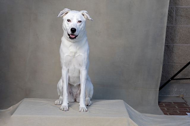 I am a spayed female, white Australian Shepherd mix.