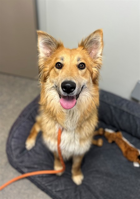 I am a spayed female, tan Australian Shepherd mix.