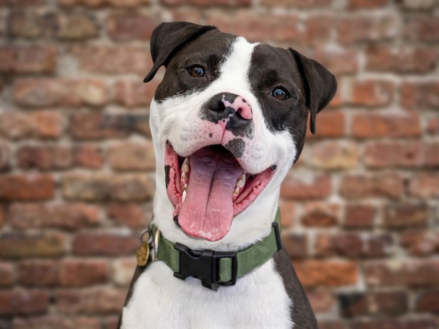 I am a neutered male, black and white Pit Bull Terrier and Boxer.