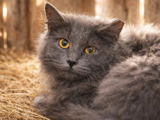 I am a spayed female, gray Domestic Longhair.
