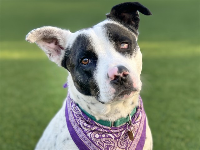 I am a spayed female, white and salt&peppr Australian Cattle Dog mix.