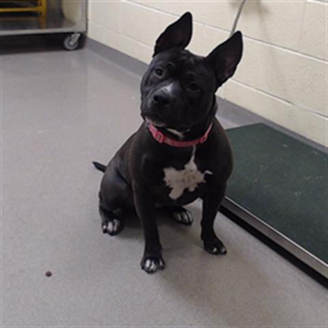 I am a female, black and white Pit Bull Terrier