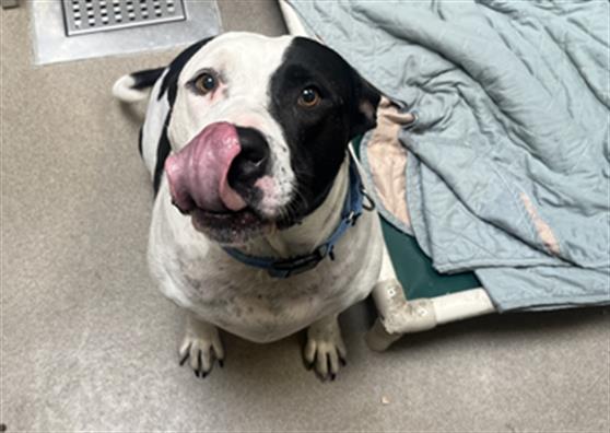 I am a neutered male, white and black American Bulldog mix