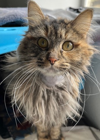 Meet Clover, a sweet long-haired beauty with a soft, flowing coat and an even softer heart. This gentle girl adores quiet moments, cozy blankets, and being near her favorite humans, offering slow blinks and the sweetest purrs to show her love. Clover has a calm, affectionate personality and would thrive in a peaceful home where she can lounge in sunny windows, enjoy gentle brushing sessions, and be treated like the little queen she is. With her graceful charm and loving nature, Clover is ready to blossom in a forever home that will cherish her as much as she’ll cherish them.