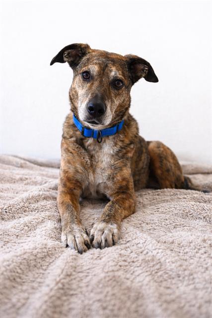 I am a spayed female, brown brindle and white Australian Cattle Dog and Catahoula Leopard Hound