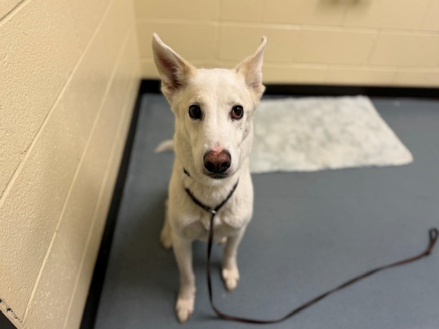 I am a neutered male, white and tan German Shepherd Dog mix