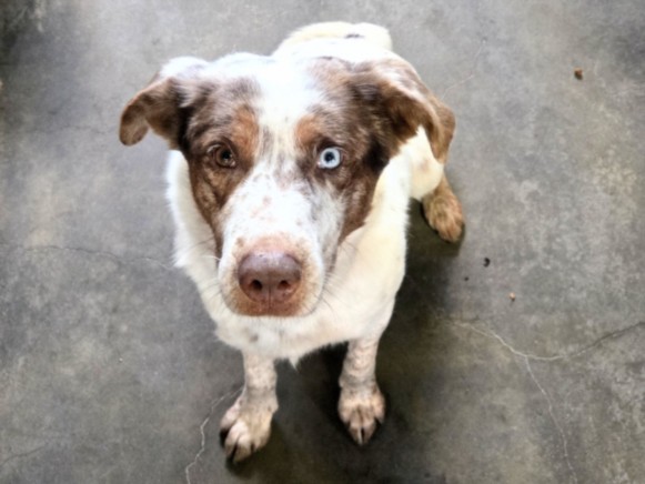 Description: My name is Vato and I am a neutered male, white and brown Australian Shepherd.