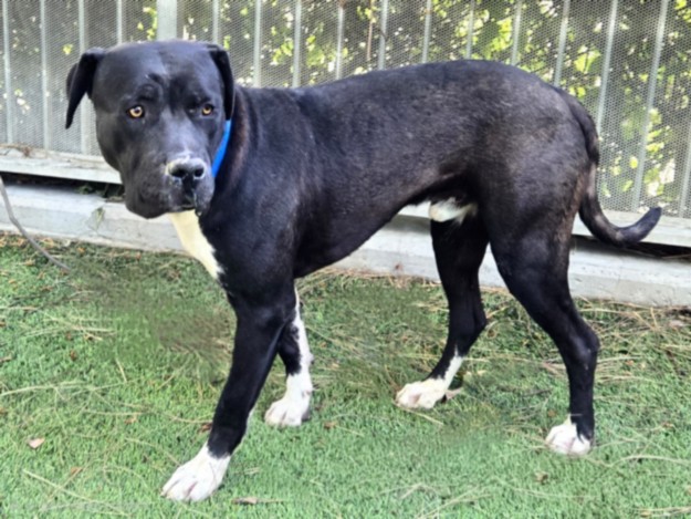 Description: My name is Whiskey and I am an unaltered male, black brindle and white Cane Corso mix.