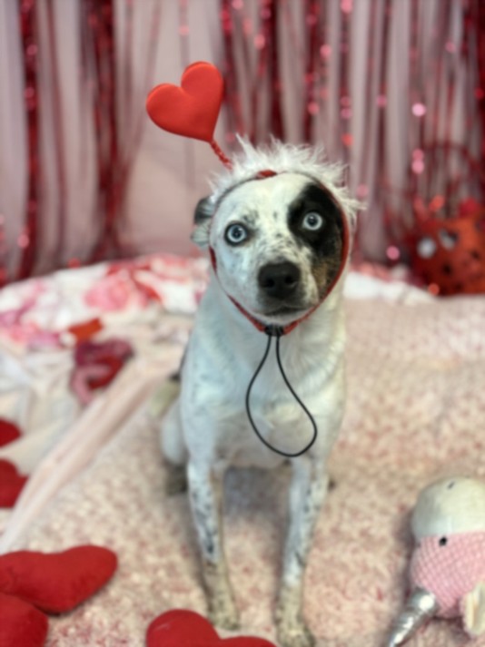 Description: My name is Sugar and I am a spayed female, white and tricolor Australian Shepherd.