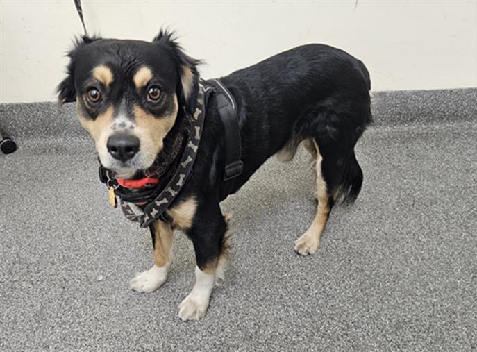 Description: My name is Dooby and I am an unaltered male, tricolor Australian Shepherd mix.