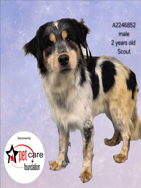 Description: My name is Scout and I am an unaltered male, white and black Australian Shepherd.