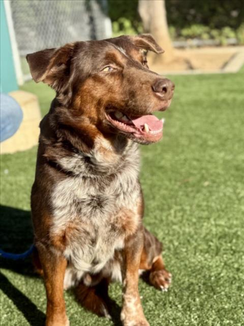 Description: My name is Rex and I am a neutered male, brown and white Australian Shepherd.