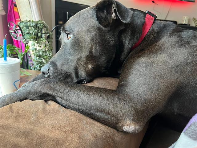 I am a neutered male, black Pit Bull Terrier mix.
