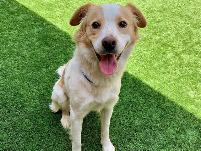 Description: Shelter staff named me Cash and I am a male, red and white Australian Shepherd mix.