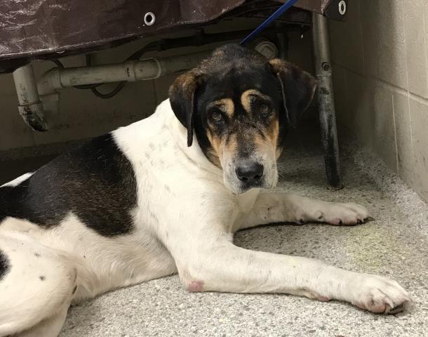 Description: I am a neutered male, tricolor Treeing Walker Coonhound mix.