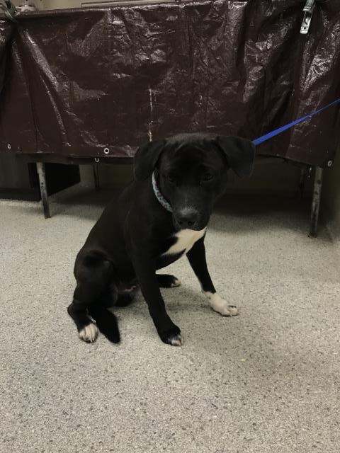 Description: I am a neutered male, black and white Labrador Retriever mix.