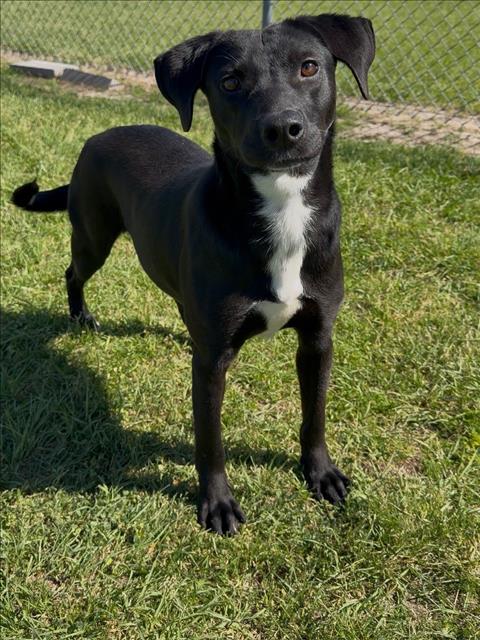 Description: I am a spayed female, black and white Labrador Retriever mix.