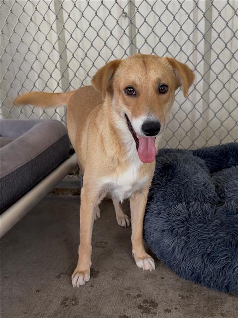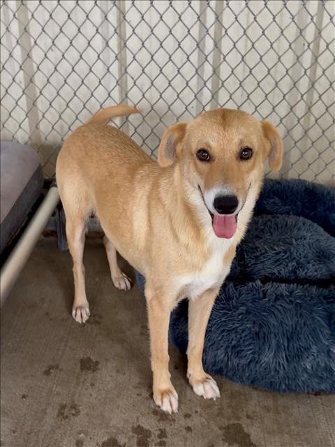 Description: I am an unaltered female, tan and white Labrador Retriever mix.