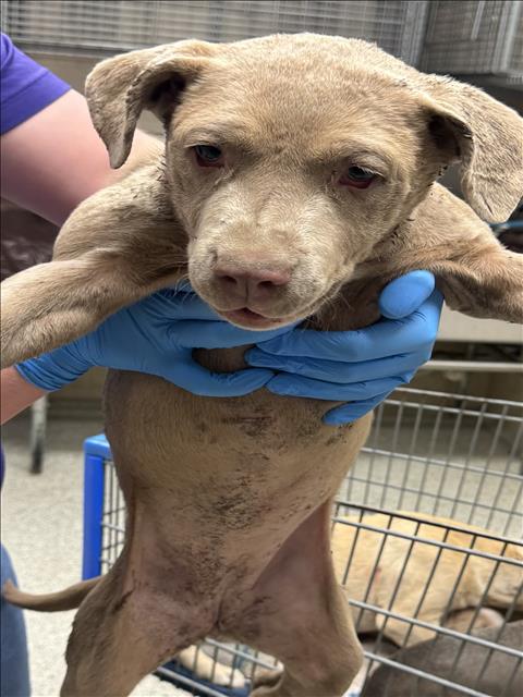 Description: I am an unaltered female, fawn Pit Bull Terrier mix.