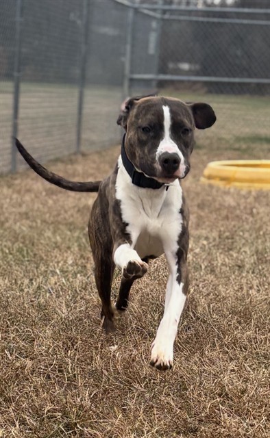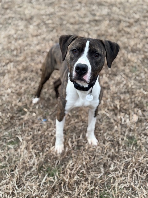 I am an unaltered male, brindle and white Terrier Mix.