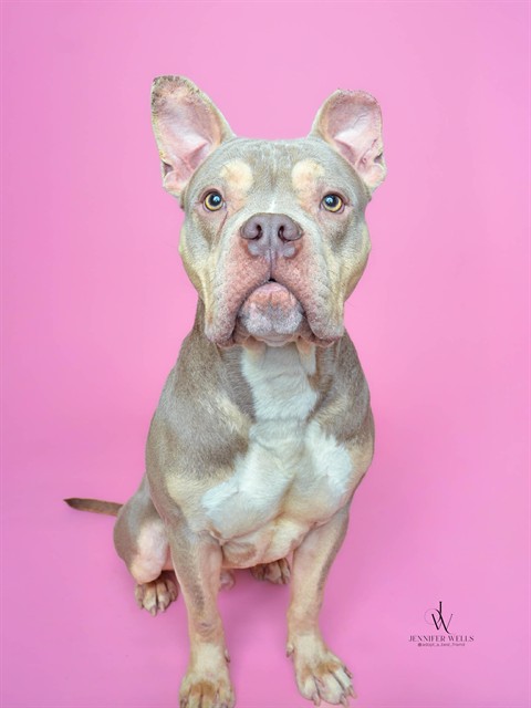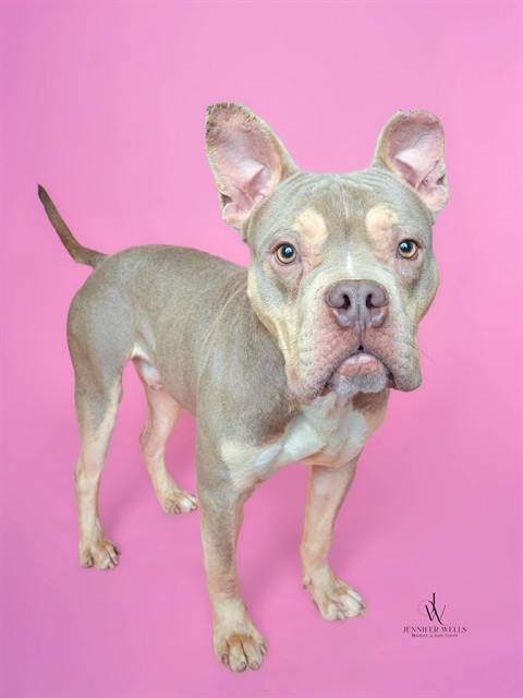 Kenzo (A565823) has all the adorable Frenchie looks—without the health issues. This young, energetic guy is full of life and enthusiasm. He walks well on leash and is very treat-motivated, making him a great candidate for continued training. Kenzo is playful and curious, exploring the world with his mouth in a puppy-like way (no biting, just excitement!). He does jump when he’s excited and has clearly enjoyed playing with just about every toy in the big pen. With his puppy energy, affectionate nature, and eagerness to please, Kenzo would thrive in a home ready to guide him with structure, training, and lots of love.