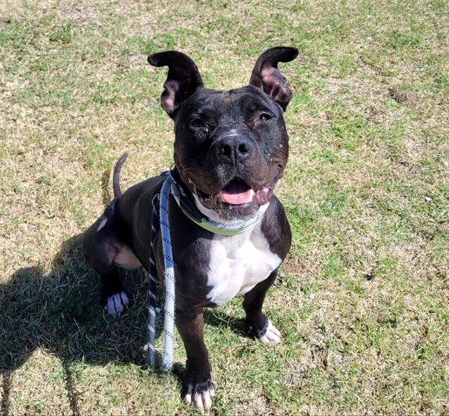 “Count me in as a member of the Doug fan club! He is an attentive, loose leash walker once you get away from the shelter and neighboring kennels. He would sweetly look up at me to check in from time to time while we walked, and he listened well. He has the best bat ears and wagging tail.”