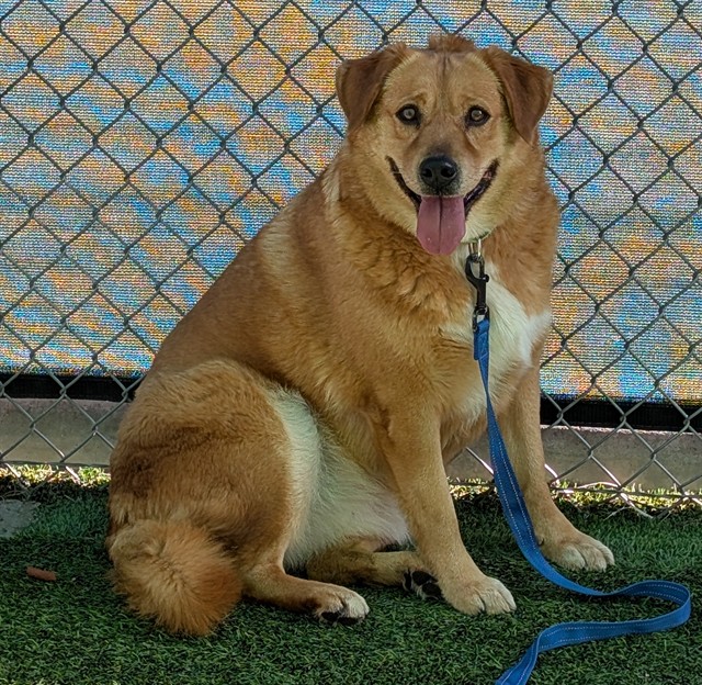 I am a spayed female, brown and white Labrador Retriever and Chow Chow.
