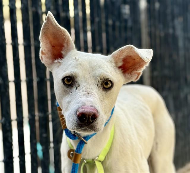 I am a neutered male, white Carolina Dog and German Shepherd Dog.