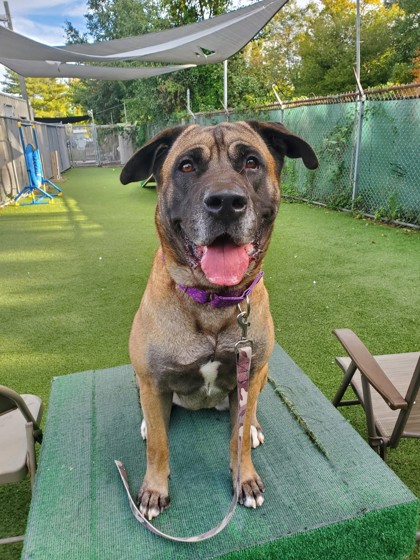 Hilly is a Sweet, soulful, and a secret snuggle-bug, Hilly is a 4½-year-old Bullmastiff with the gentlest eyes and a heart full of quiet devotion. She can be a little shy when meeting new people but with patience and kindness, Hilly quickly reveals her true self, a loving, loyal companion who forms deep bonds. Once she feels safe, Hilly melts into affection, gazing up at you with soft eyes and happily soaking up every bit of love. She enjoys calm leash walks, relaxed hang-out time, and peaceful companionship. Toys, especially balls, are her favorite! Hilly already knows how to “sit” and would do best in a calm, understanding home with older kids. She’s polite, gentle, and well-mannered. If you’re searching for a loyal, tender-hearted dog whose love runs deep, Hilly may be the perfect match.