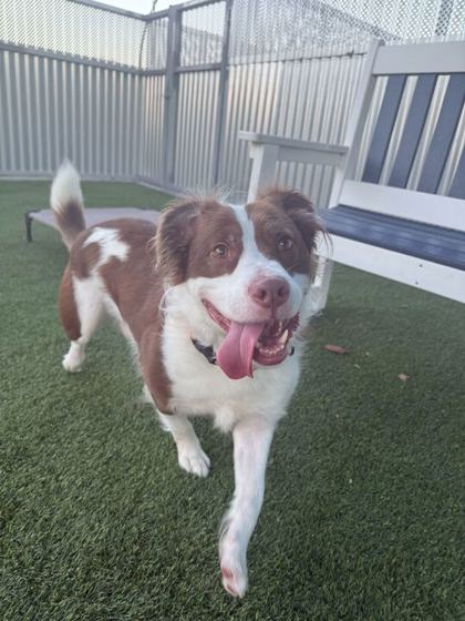 Maverick is a handsome boy with a fun, social personality. He enjoys spending time with other dogs and does well in play groups. His play style is lively and vocal, and he loves to be part of the action.