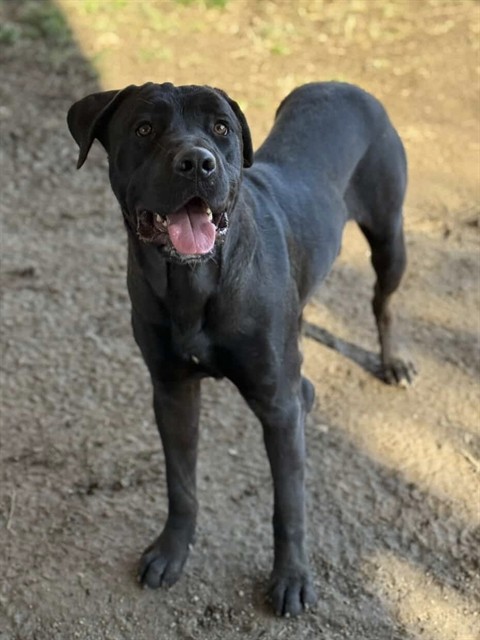 Description: I am a neutered male, 77.00 lbs, black and white Mastiff mix.