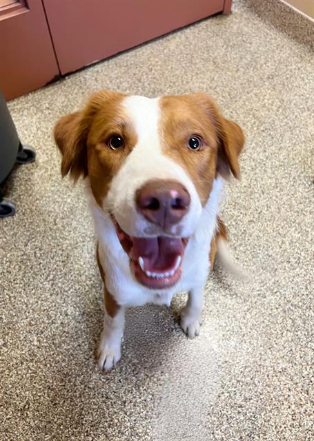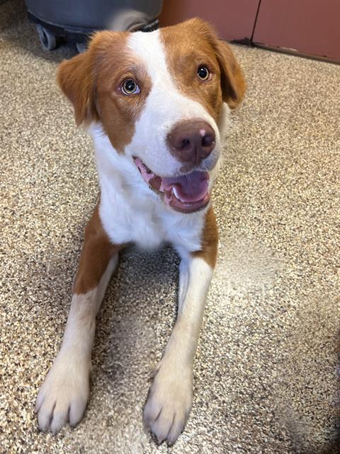 Description: I am a male, 56.00 lbs, red and white Australian Shepherd mix.