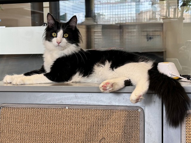 Description: My name is Grover and I am a male, black and white Domestic Longhair.