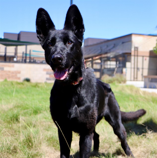Description: My name is Diamond and I am a female, black German Shepherd Dog.