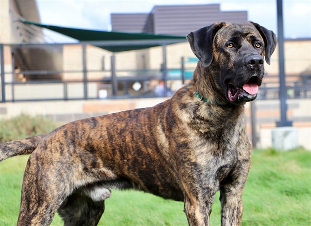 Description: My name is Caribou and I am a male, black brindle Mastiff.