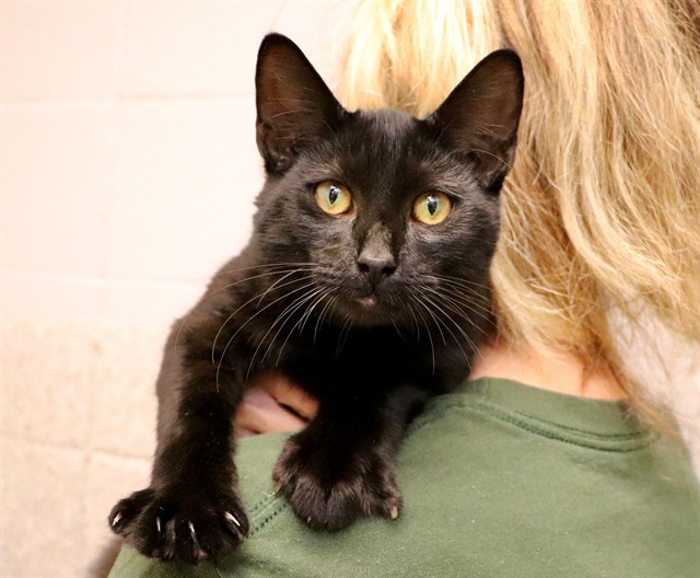 Description: My name is Luxor and I am a male, black Domestic Shorthair.