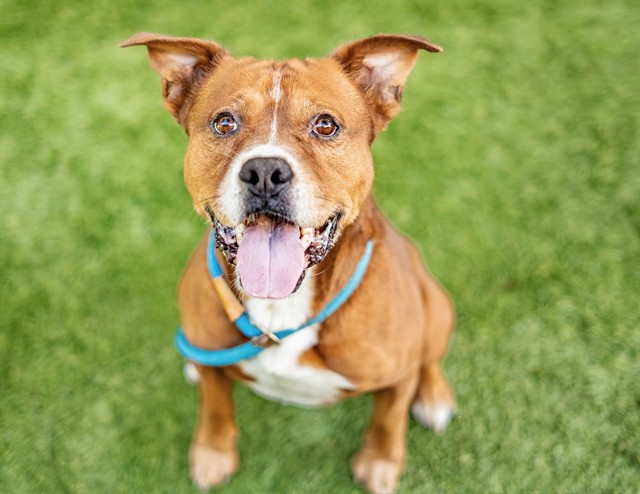 This happy, outgoing guy is easy to leash and handle, knows his name, and comes when called—bonus points for good recall. He’s affectionate, attentive, and loves engaging with his people, especially if playtime is involved. Fetch is his absolute favorite, and he’s very ball-motivated (so much so that non-chew toys are a must—no tennis balls to chomp!).