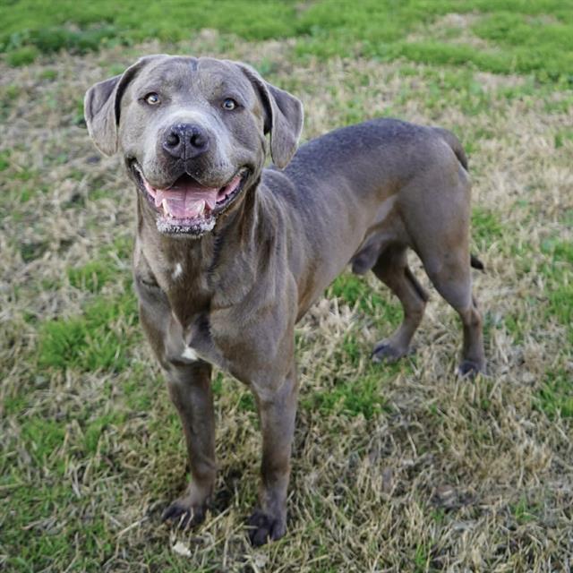 I am a neutered male, gray and white Cane Corso mix.