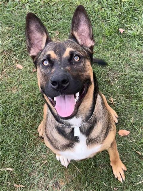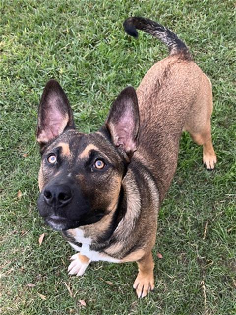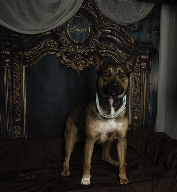 Description: I am a spayed female, 55.00 lbs, brown and black Shepherd mix.