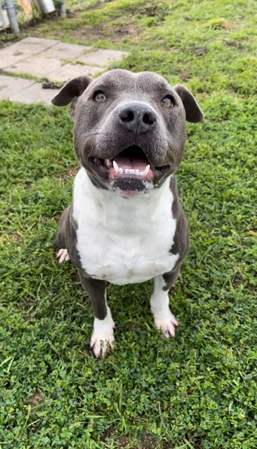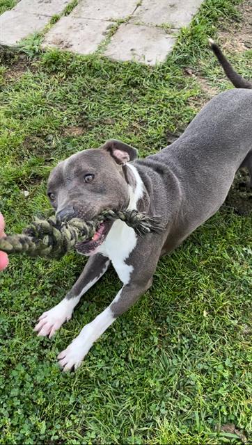 Jupiter has a smile that’s truly out of this world - and he flashes it all the time because he’s just so happy to be around people! This handsome boy is playful, energetic, and full of the zoomies, but he also has a sweet side and would happily be a big lap dog if given the chance. Jupiter is highly food and treat motivated, which makes him a quick learner. He already knows how to sit and is sure to pick up more commands in no time. He loves toys - especially rope toys - and is a big fan of playing tug-of-war…though he’s also been known to entertain himself by tossing them around solo.