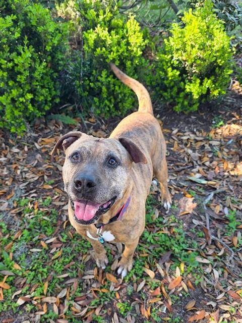 Description: I am a neutered male, brown brindle dog.
