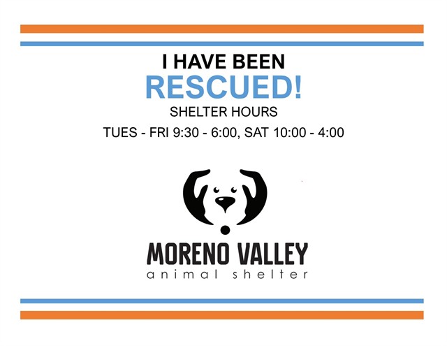 • While we strive to provide accurate information about the observations of pets in our care, please be advised that all behavior described was observed in an animal shelter environment and that pets may behave differently in response to new environments or experiences. All pets at the Moreno Valley Animal Shelter are adopted on an as-is basis with no behavioral guarantees.