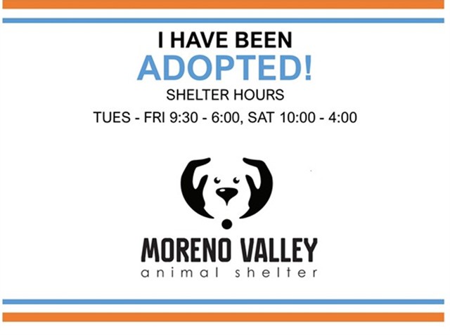 • While we strive to provide accurate information about the observations of pets in our care, please be advised that all behavior described was observed in an animal shelter environment and that pets may behave differently in response to new environments or experiences. All pets at the Moreno Valley Animal Shelter are adopted on an as-is basis with no behavioral guarantees.