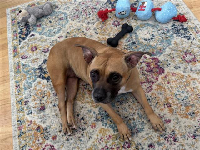 "Megan came and stayed with us for a 2-day sleepover. She was a joy to have. She’s extremely intelligent, well behaved, and was so polite in our home. She’s mid-size, and is not a dog who knocks things over or makes a mess. She engages eye contact, is very attuned to her people, or person. She does not jump. She waits for permission to get on the couch or bed. She knows “sit”. She is very good with “no”, or even just a slight lowering of tone of voice. She is a love bug. Absolutely loves to snuggle, wants to be right next to you. She loves lounging with her people. She’s happy to play also…will go get a toy if you throw it, enjoys tug of war. She hasn’t gotten the return part of fetch down yet but it would be easy to teach her, she’s super smart. She knows “go for a walk” and “go for a ride”. She’s excellent in the car…there’s no frantic pacing or whining. She sat in the backseat totally happy. I mostly took her for walks on trails, once I ran with her for 1/2 mile to see how she’d do. She paced beautifully. This girl is gentle and sweet. She was happy to use the crate when I had an appointment to go to. I feel sure she’d be fine to sleep in a dog bed, or whatever you asked of her. I let her sleep on my bed and she gladly curled up next to me and never moved an inch all night."