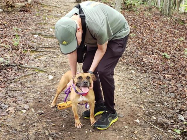 Dog Day Out Personal Information: Megan enjoys hikes and walks in wooded areas where she can smell all the things! We noted Megan is fine walking by dogs as long as they do not get into her personal space. She'd be best as an only dog. Megan would also prefer not to live with cats either.